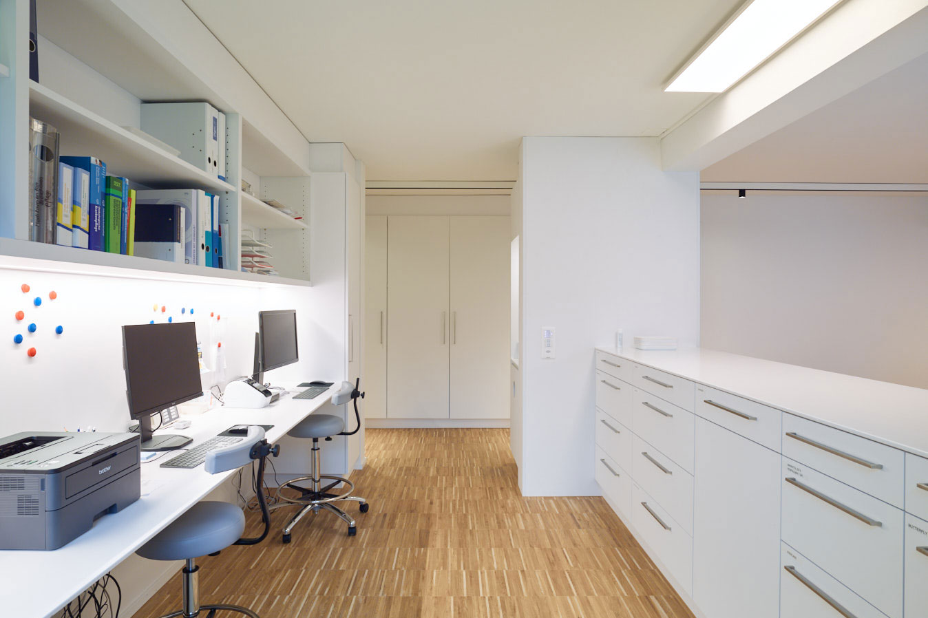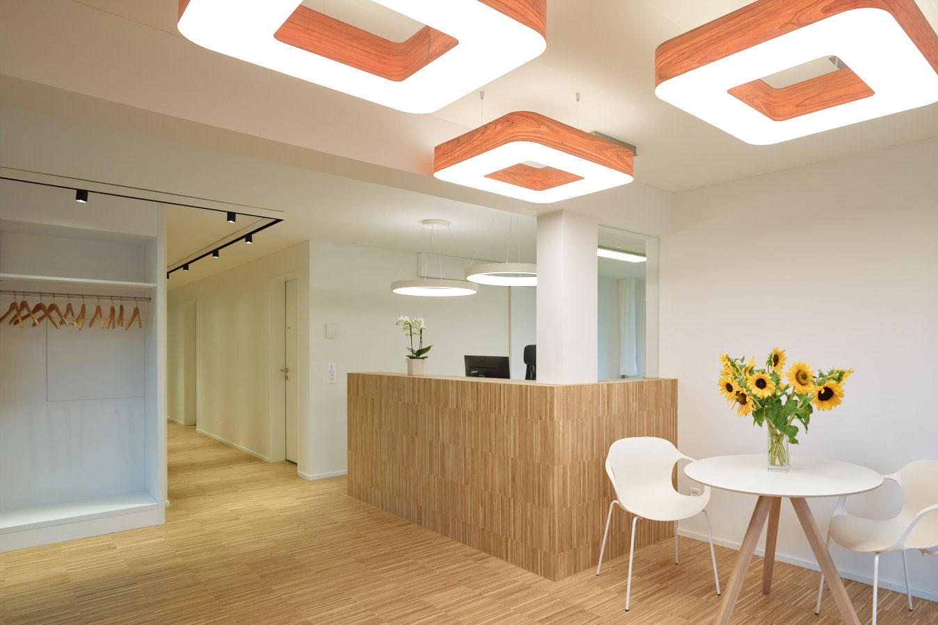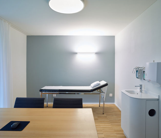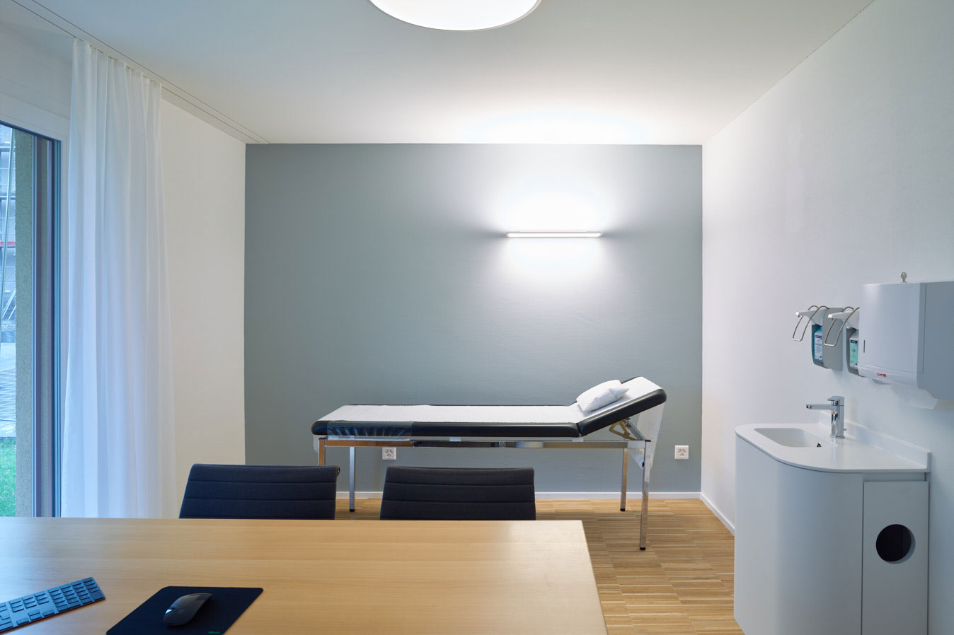 Eine Arztpraxis muss mehrere Bedürfnisse abdecken: Die Patienten sollen sich gut aufgehoben fühlen, der Patientfluss muss gut organisierbar sein und die Materialien müssen pflegeleicht und desinfektionsmittelresistent sein.